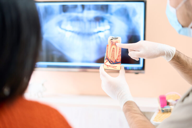 このように、保険診療の根管治療は数回に分けて進めるのが一般的です。治療回数や期間は、歯の部位や根の本数、感染の広がり具合によって変わります。